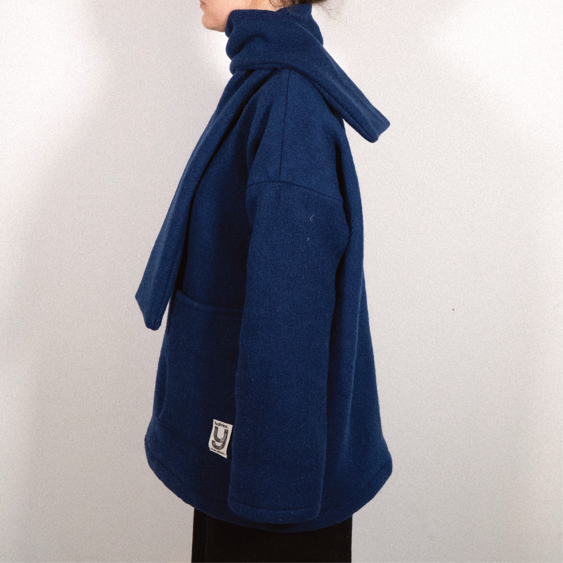 Il se porte de plusieurs manières. Vous pouvez le porter par-dessus votre veste comme un manteau ou en dessous comme un pull d'intérieur. L'écharpe s’ajuste avec ou séparément de la base.