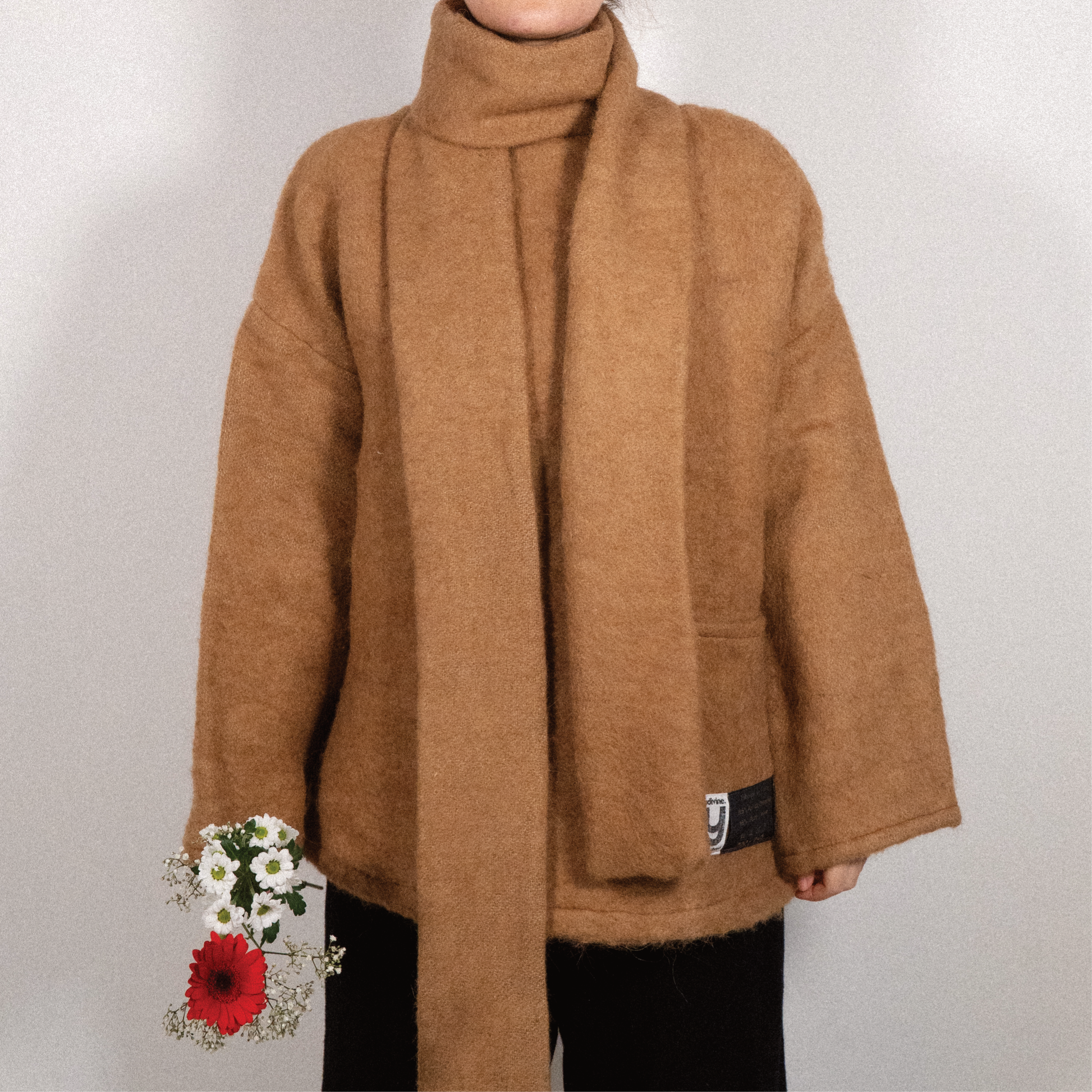 Il se porte de plusieurs manières. Vous pouvez le porter par-dessus votre veste comme un manteau ou en dessous comme un pull d'intérieur. L'écharpe s’ajuste avec ou séparément de la base.