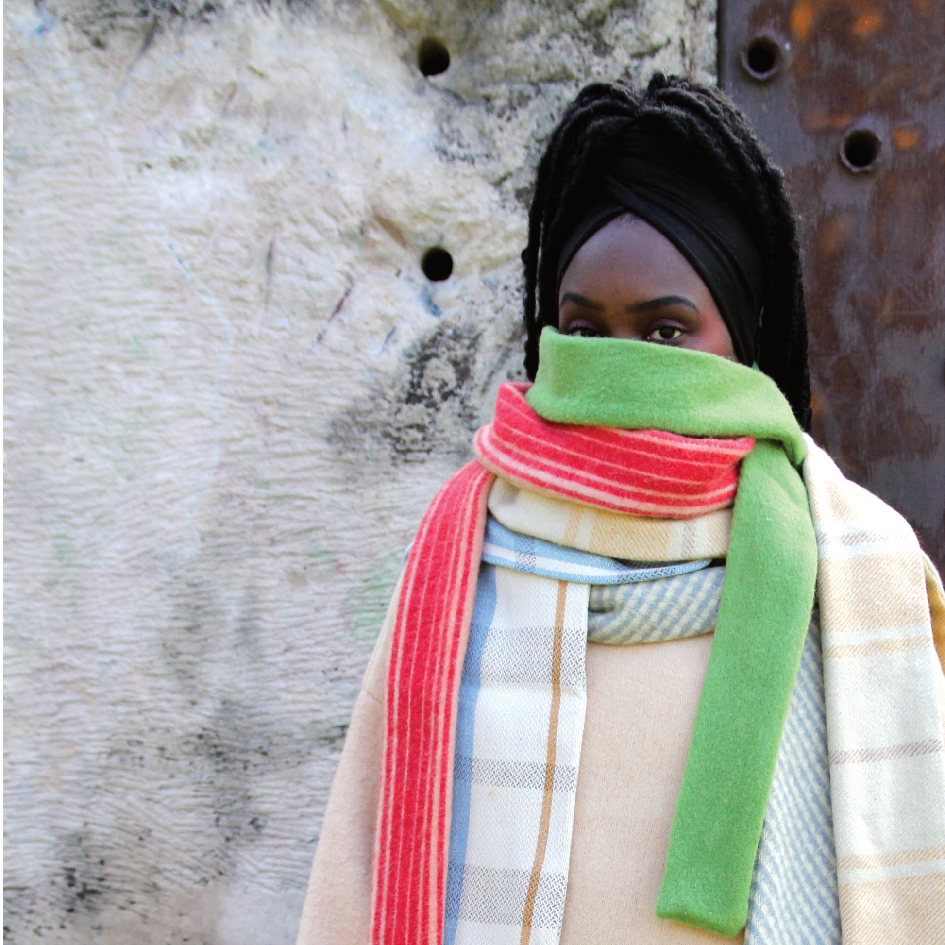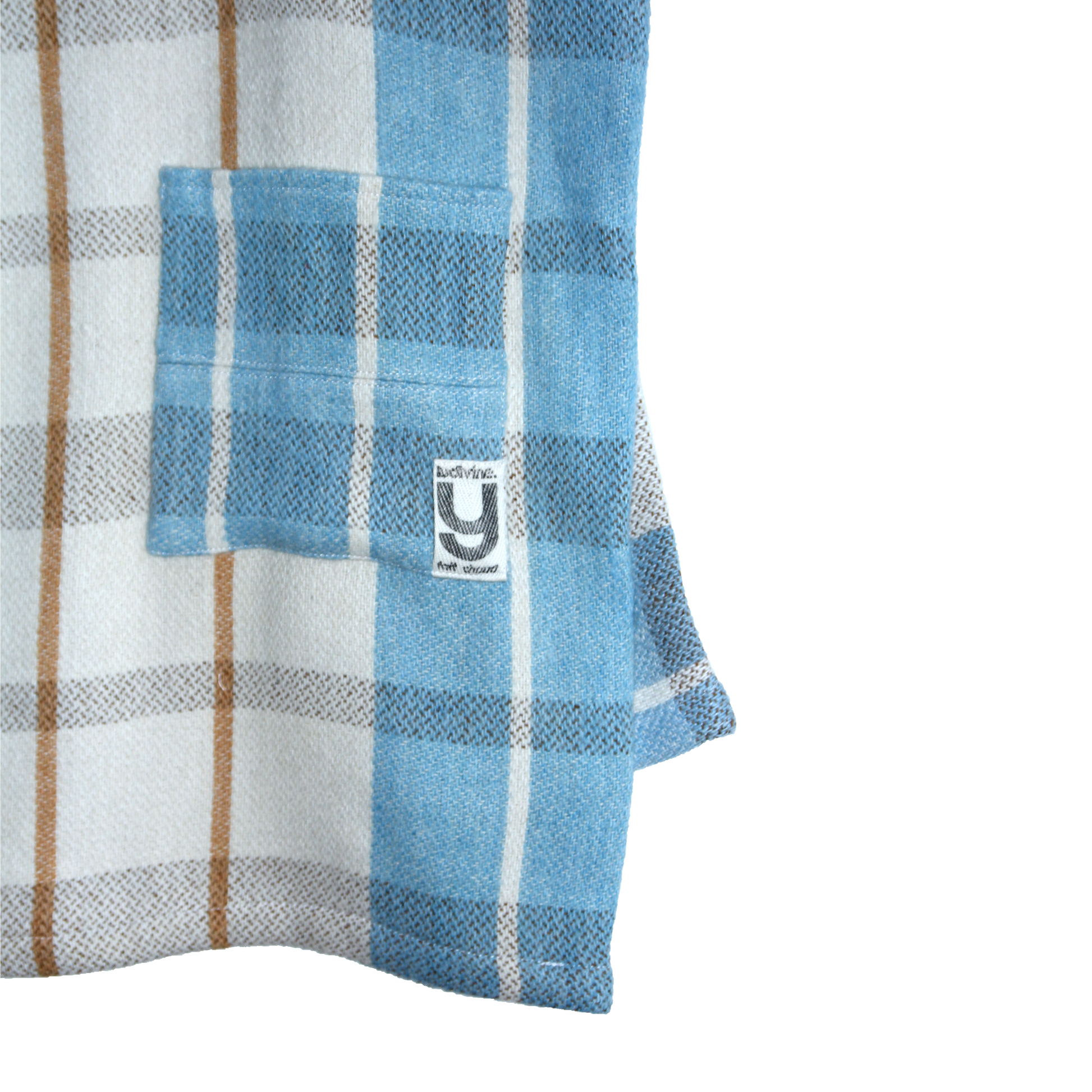 Ce manteau-pull fut une couverture à carreaux bleu et blanche.