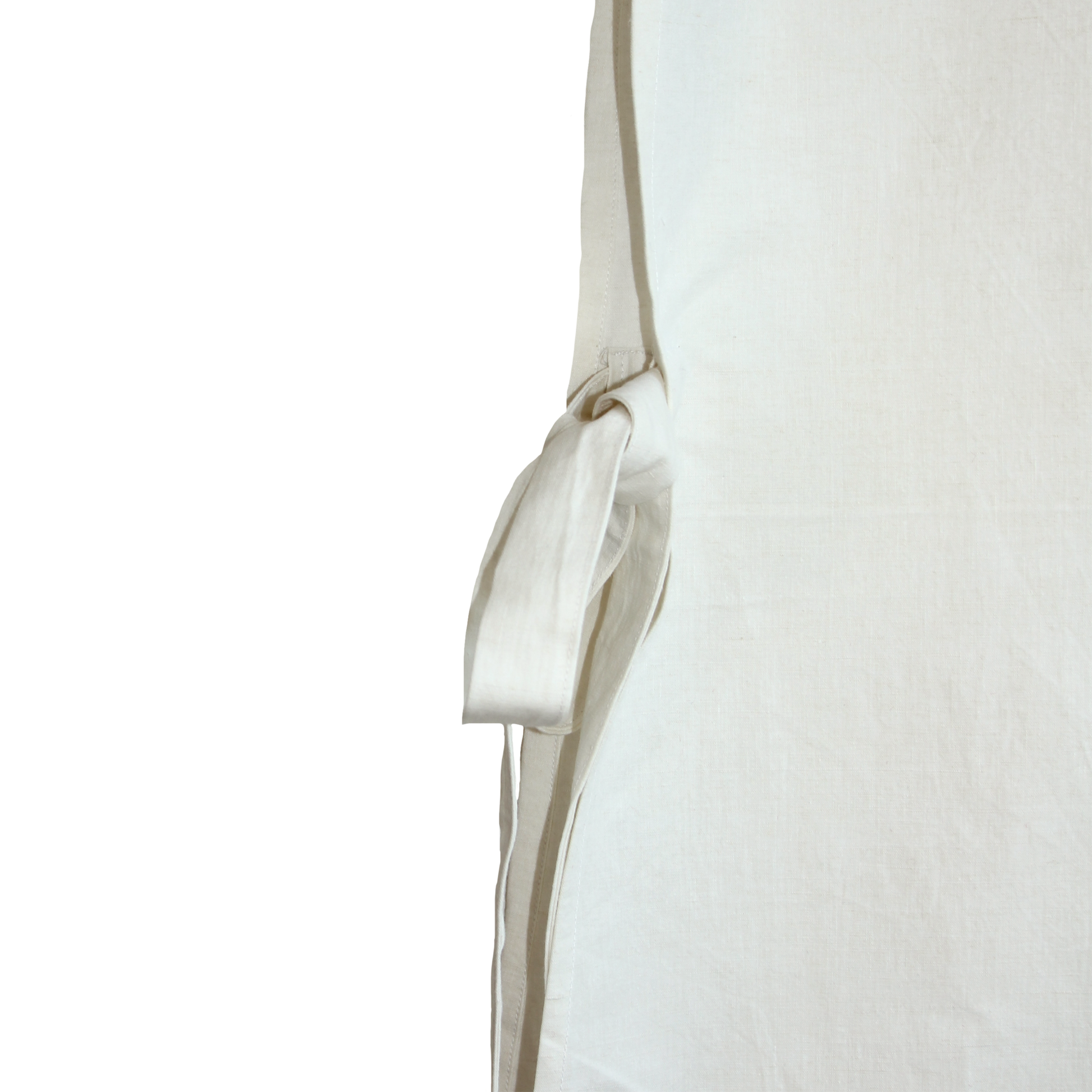 Le tablier blanc est une pièce inspirée des coupes japonaises. La coupe droite crée une silhouette graphique. Il y a deux liens sur les côtés avec des passants.
