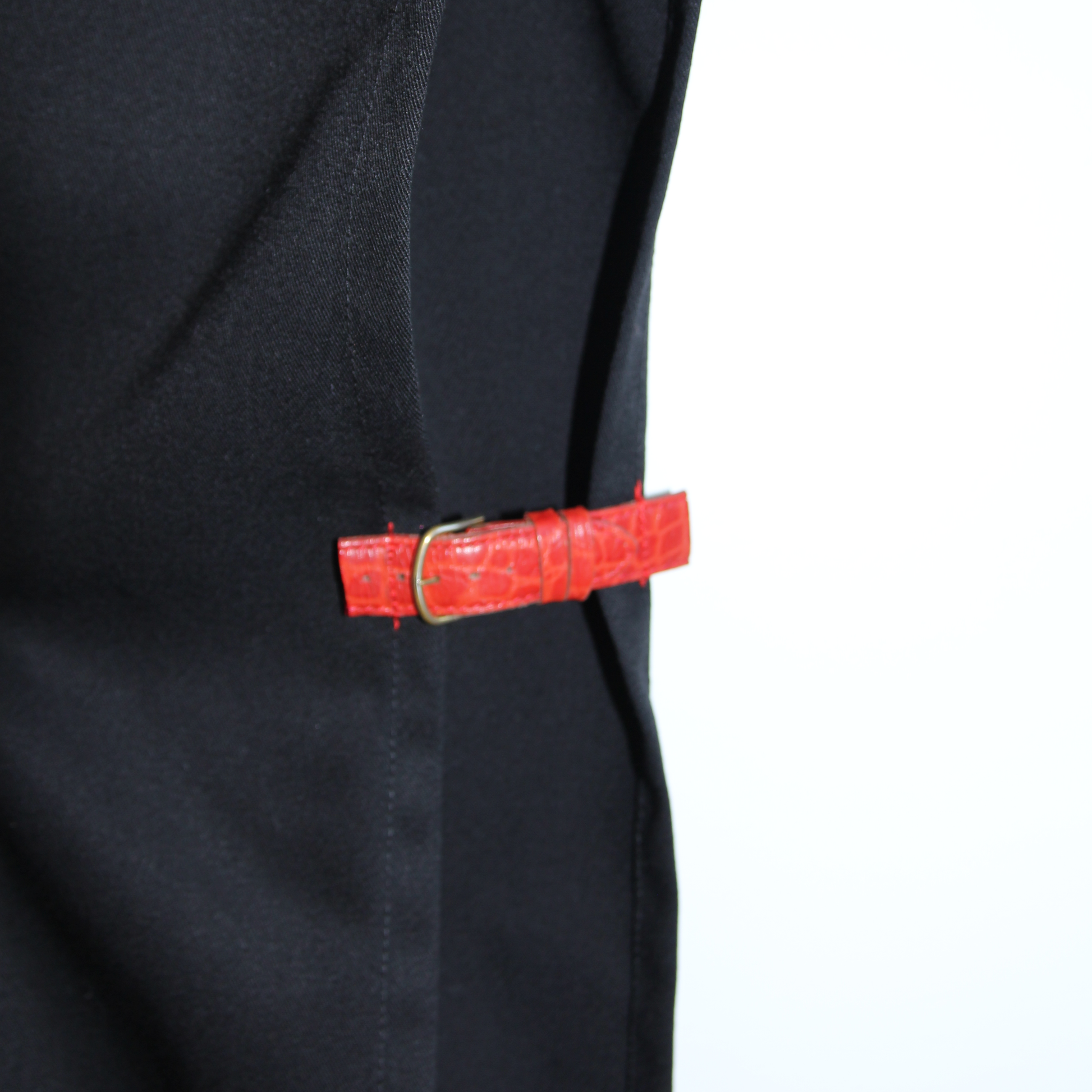 Le tablier en noir est une pièce inspirée des coupes japonaises.