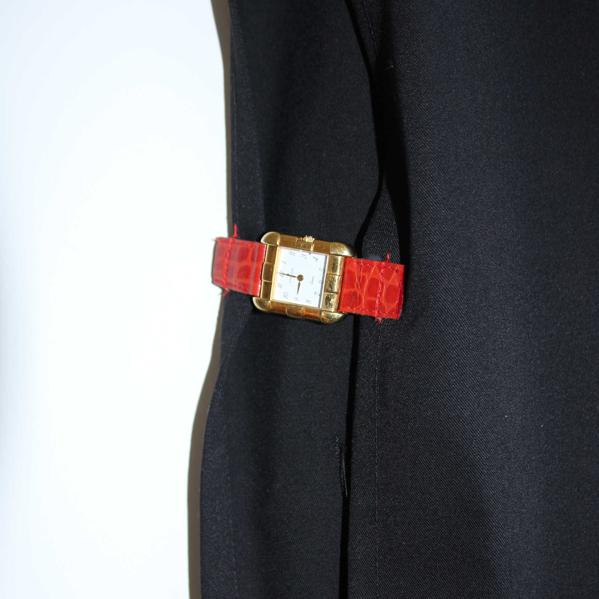 L'attache est réalisé à partir d'une montre rouge vintage.